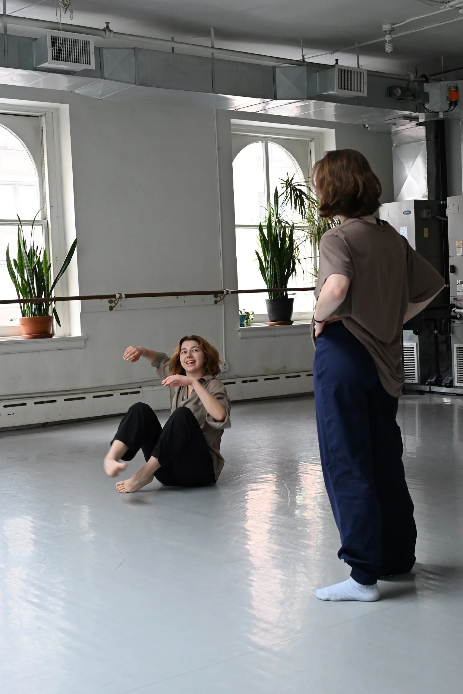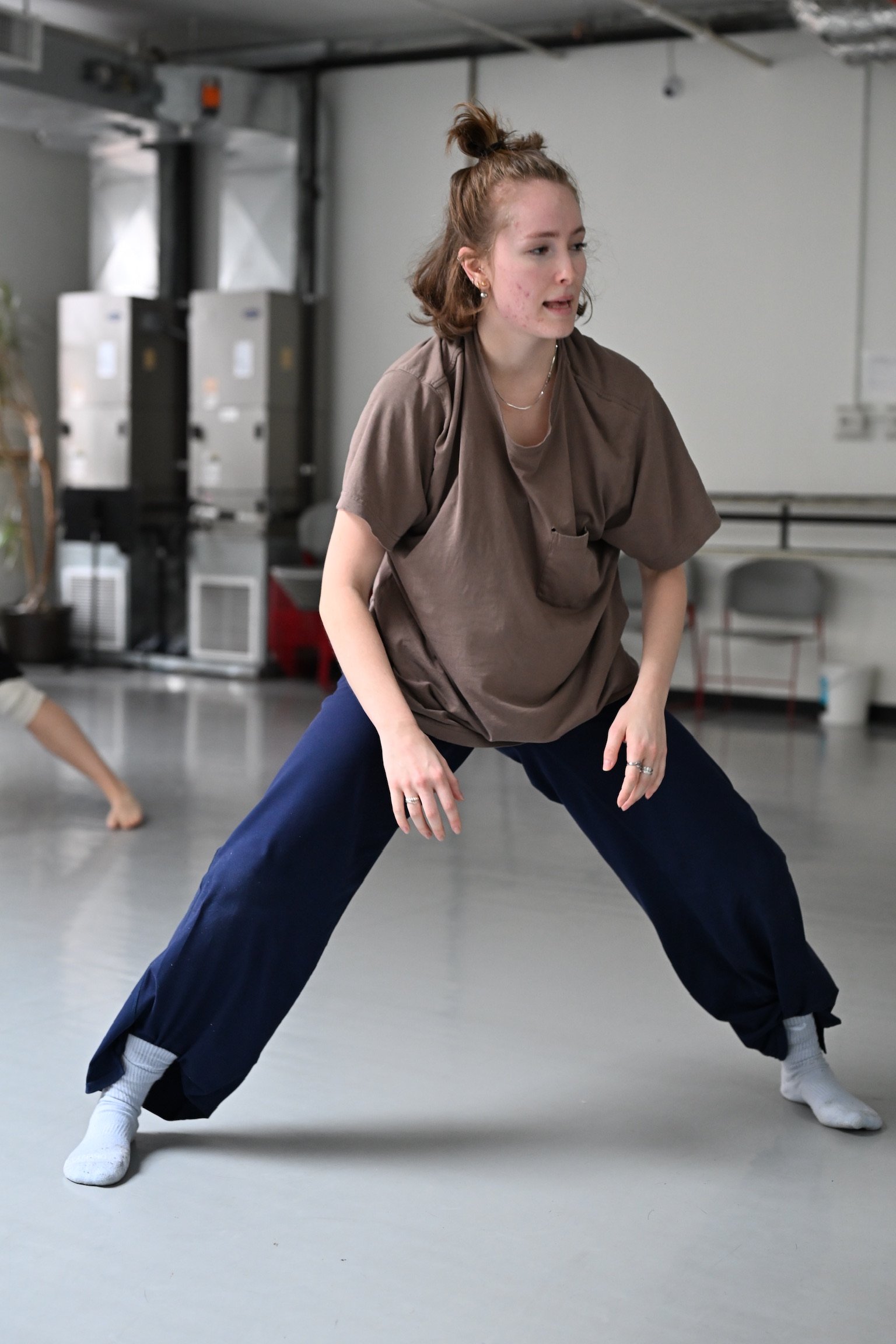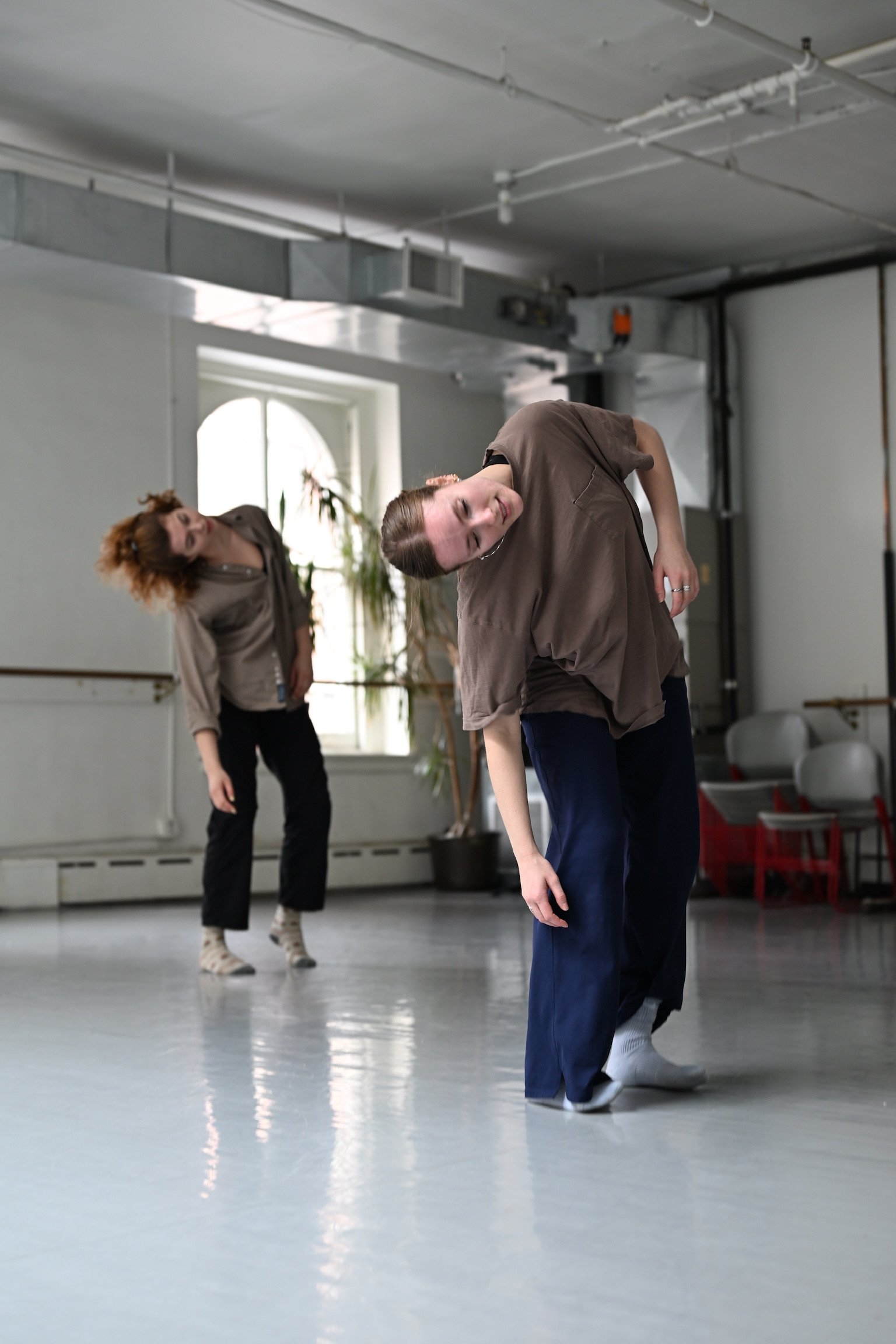 Sophia designs her class to reduce performance pressure so dancers can access their most authentic movement. She feels strongly about supporting those who experience anxiety or “freeze” responses by emphasizing softness, choice, movement that feels good and mindful pacing through offerings and suggestions. Through loose structure, dancers are given the space to reconnect technical movement with pleasure and internal sensation, building up warmth from the inside out through stabilizing exercises, mobility and grounding without rigidity, and articulation through breath-led spinal work.